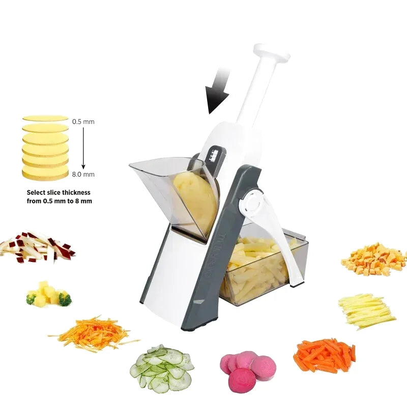 Mandoline de cuisine à piston gris pour tranchage rapide